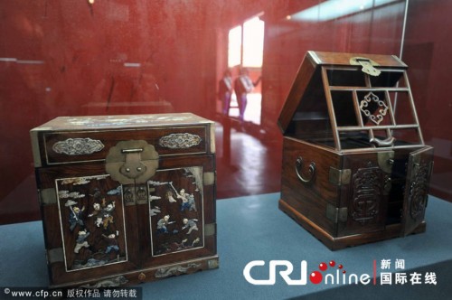 故宮博物院齋宮,香港兩依藏博物館百余西式化妝盒藏品。19件(套)明清紫檀、黃花梨家具,陳列齋宮正殿。游客持故宮門票,即可一睹世界頂級珠寶大師經典之作。