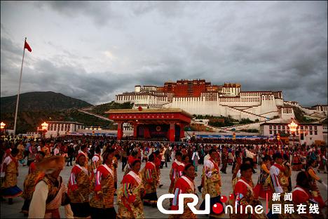 西藏自治區各界群眾在布達拉宮廣場跳起藏族傳統舞蹈