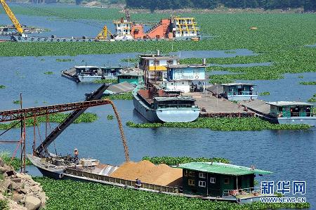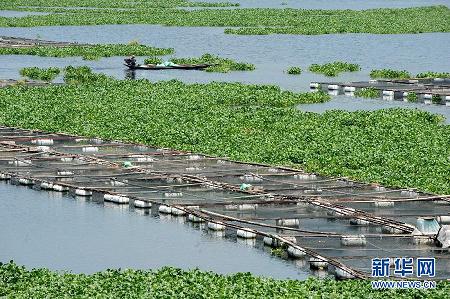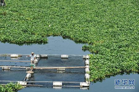 福建閩江被水葫蘆包圍的養(yǎng)殖區(qū)。為保護(hù)閩江水資源,加大整治水葫蘆力度, 一場“清剿”水葫蘆大戰(zhàn)近日在福建閩江水口電站大壩前拉開。從4月份入汛以來,隨著氣溫升高,水葫蘆在閩江水口電站上游瘋長,目前,往下游漂流的水葫蘆,覆蓋了閩江水口電站大壩近10公里水面,瘋長的水葫蘆給閩江水質(zhì)、行洪、航運、養(yǎng)殖等方面都造成了不同程度的影響。由于水葫蘆的繁殖能力很強,正常生長期的水葫蘆每10-15天面積就能翻一番,因此治理難度很大。2003年,福建打響了葫蘆“殲滅戰(zhàn)”,雖然取了得階段性成果,但水葫蘆在閩江泛濫問題仍得不到根治,現(xiàn)已成為水利管理的一大難題.
