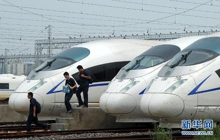 被召回的CRH380BL型動車組停靠在上海虹橋動車所進行整修。當日起,中國北車召回在京滬高鐵運營的54列CRH380BL型動車組,上海虹橋動車所開始對部分召回停運的該型號動車組進行全面整修。據介紹,京滬高鐵從16日起實行新的運行圖,被召回的列車將在上海、北京等地的動車所進行全面整修。