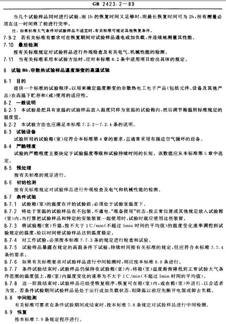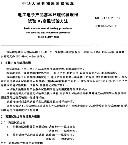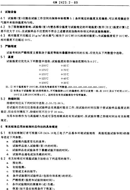GB2423.2-89電子電工試驗規程高溫試驗方法