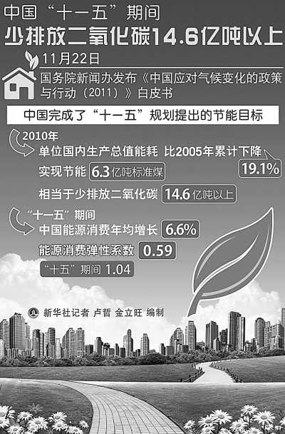 國務院新聞辦公室11月22日發布《中國應對氣候變化的政策與行動(2011)》白皮書(全文見第十五版、第十六版)。白皮書說,中國提出的各項約束性指標彰顯了中國政府推動低碳發展、積極應對氣候變化的決心。國家發展改革委副主任解振華在新聞發布會上表示,經過各方努力,相信我國能夠完成“十二五”期間的節能減排和控制溫室氣體排放目標。