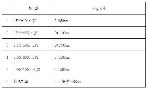 C大小根據高低溫試驗箱箱體的門尺寸具體確定,具體尺寸見下表。