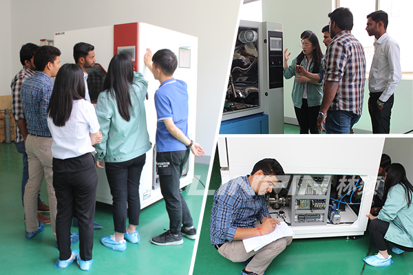 印度代理商此前曾兩次考察林頻,并順利簽訂合作代理協議。此次來訪旨在進一步了解我司的實力并安排其技術人員進行環境試驗設備的安裝調試專業培訓,代理商先后參觀了我司的研發部、PLC部、電工部、制冷部、國際貿易部、生產車間等,對設備生產的各個環節從數據核算、模型推演、工程制圖、下料加工到設備調試,再到包裝出貨都進行了詳細的了解。在為期三天的安裝調試專業培訓過程中,印度代理商對林頻所具備的技術力量、生產能力給予高度評價,同時,對我司高端智能化裝備充滿興趣,對產品質量贊不絕口。